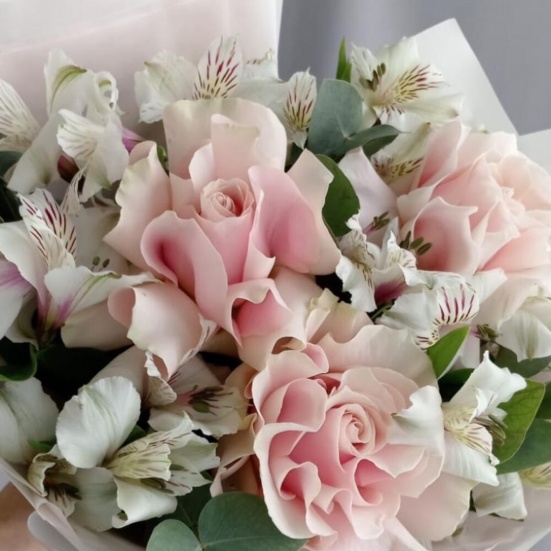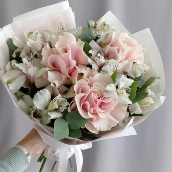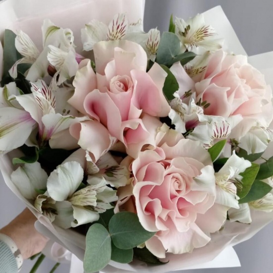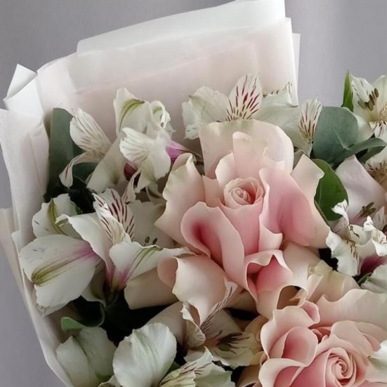 Букет из 3 французских роз и Альстромерии в Ханты-Мансийске