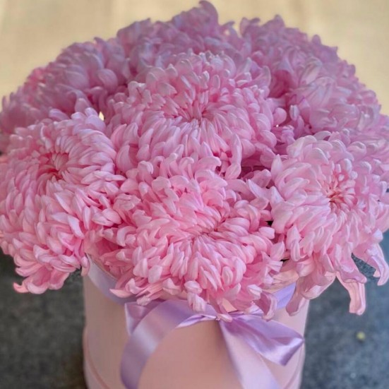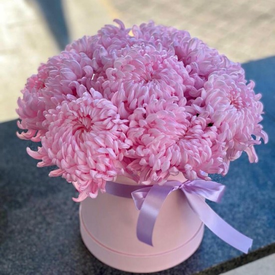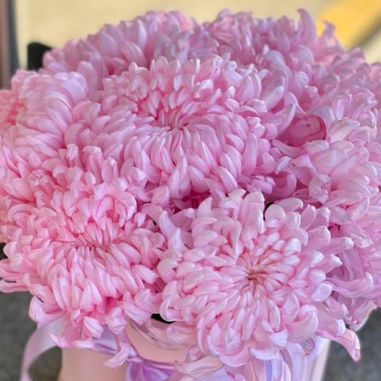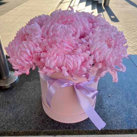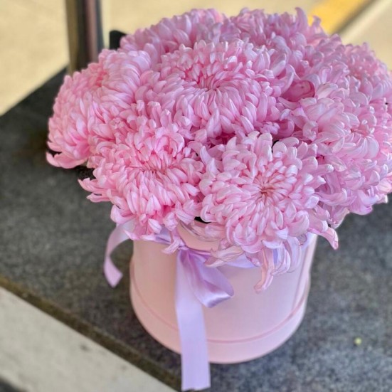 9 розовых хризантемы в коробочке в Ханты-Мансийске
