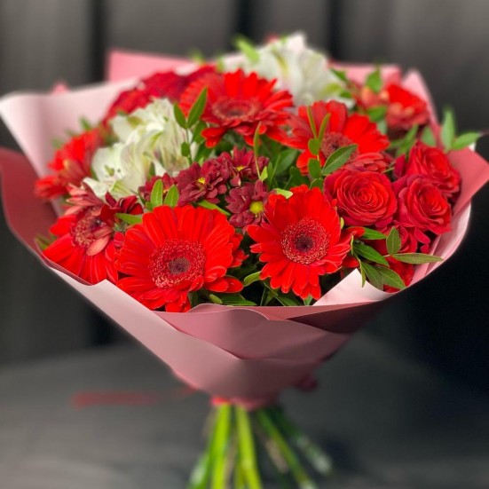 Идеально собранная композиция, спасибо за качественный букет. Доставка не подвела все во время. Буду обращаться еще. Процветания и успеха Вам.
