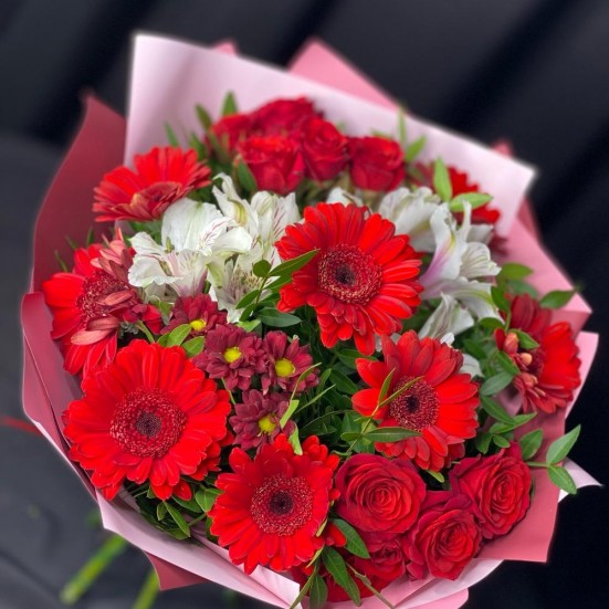 Букет «Хризантема, гербера и альстромерия» в Ханты-Мансийске