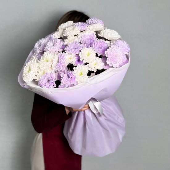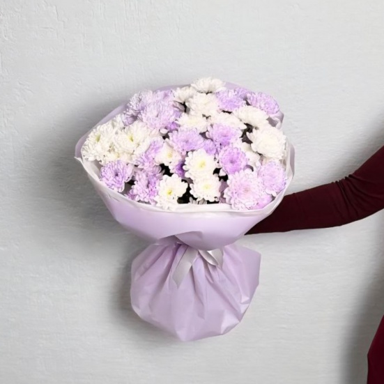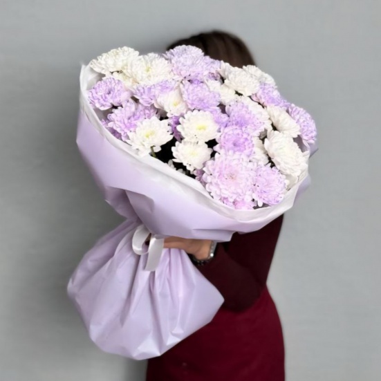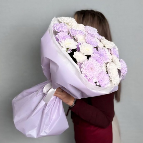 Букет из 9 фиолетовых и белых хризантем в Ханты-Мансийске