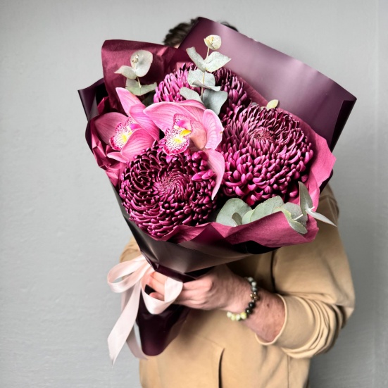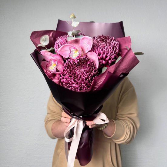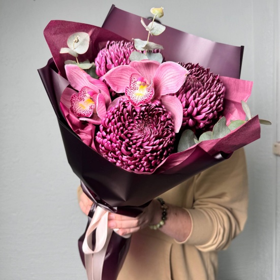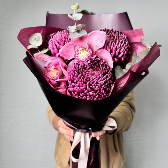 Букет из хризантем Бигуди и Орхидей
