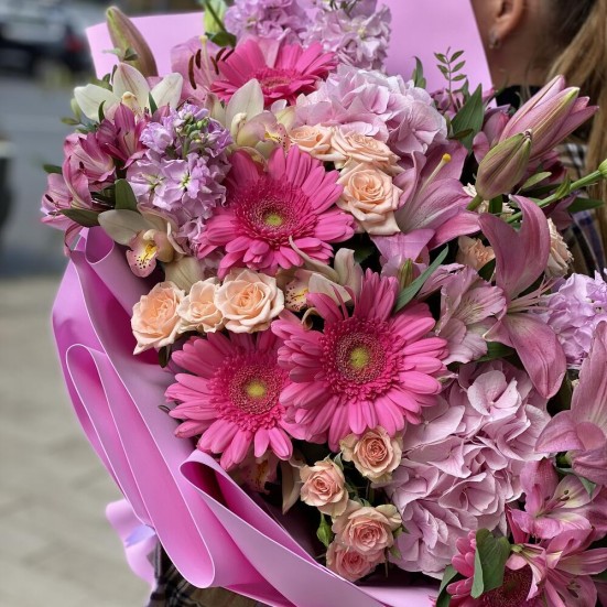 Идеально собранная композиция, спасибо за качественный букет. Доставка не подвела все во время. Буду обращаться еще. Процветания и успеха Вам.