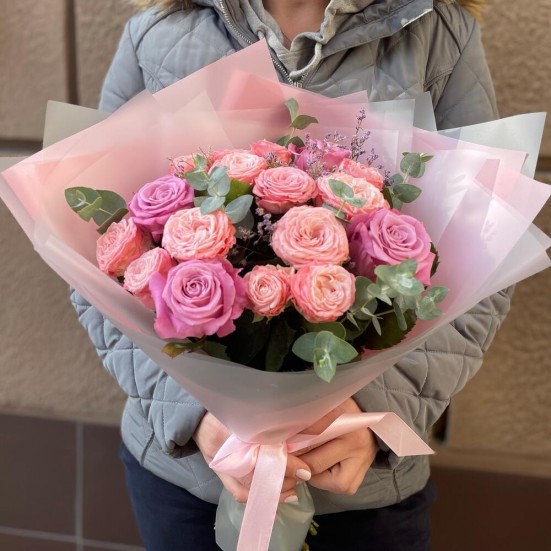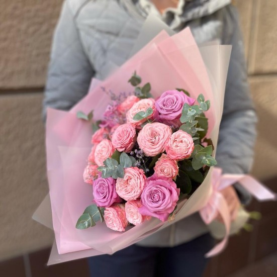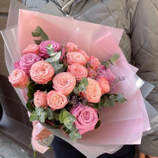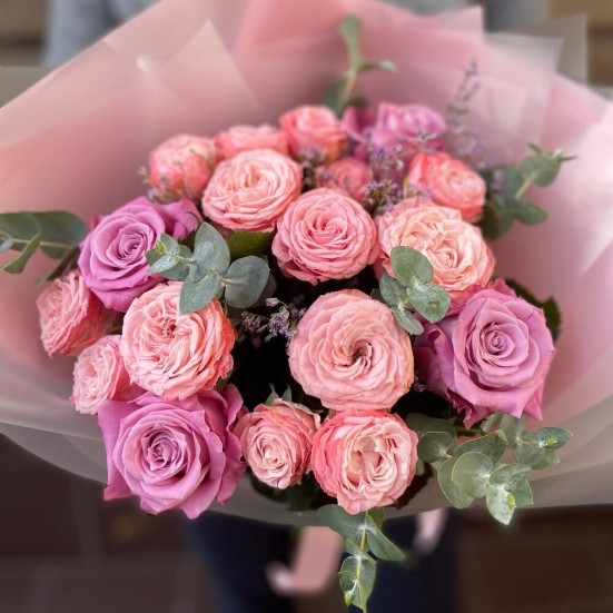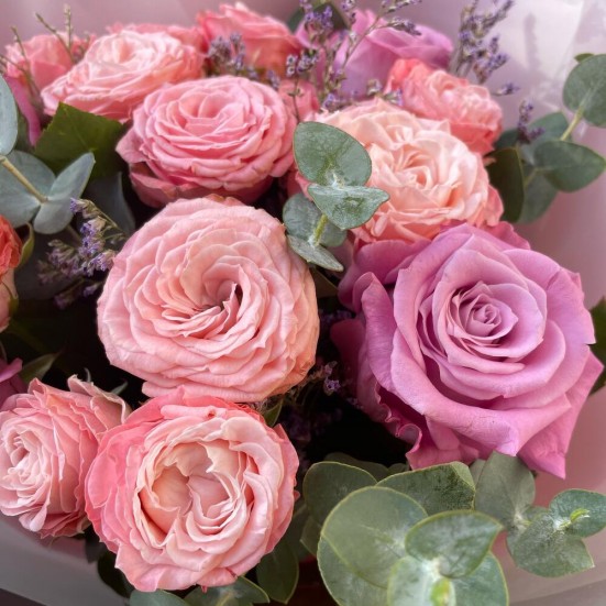Букет «Пионовидных роз с эвкалиптом» в Ханты-Мансийске