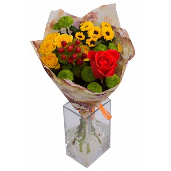 Идеально собранная композиция, спасибо за качественный букет. Доставка не подвела все во время. Буду обращаться еще. Процветания и успеха Вам.