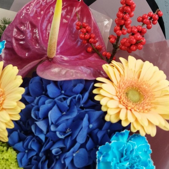 Идеально собранная композиция, спасибо за качественный букет. Доставка не подвела все во время. Буду обращаться еще. Процветания и успеха Вам.