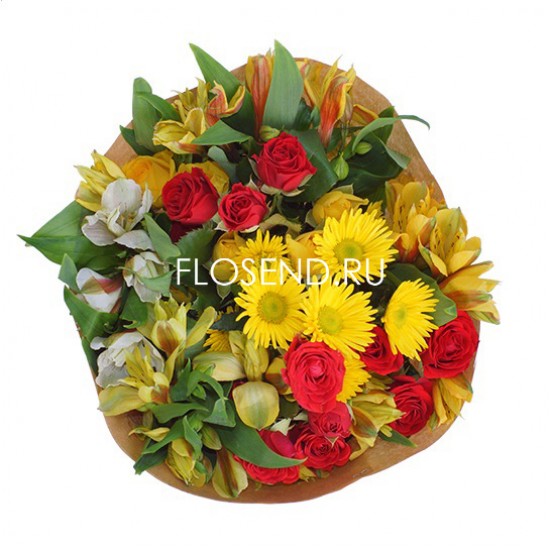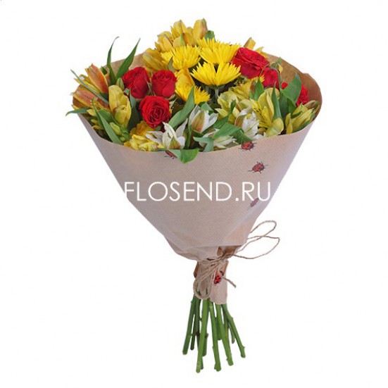 Букет из хризантем и кустовой розы и альстромерий в Ханты-Мансийске