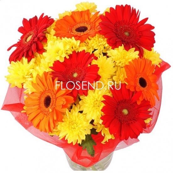 Букет из красных гербер и желтых хризантем в Ханты-Мансийске