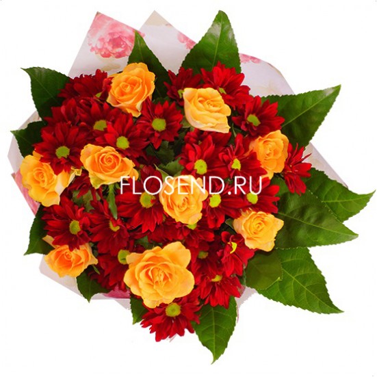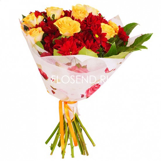 Сборный букет из роз и хризантем в Ханты-Мансийске